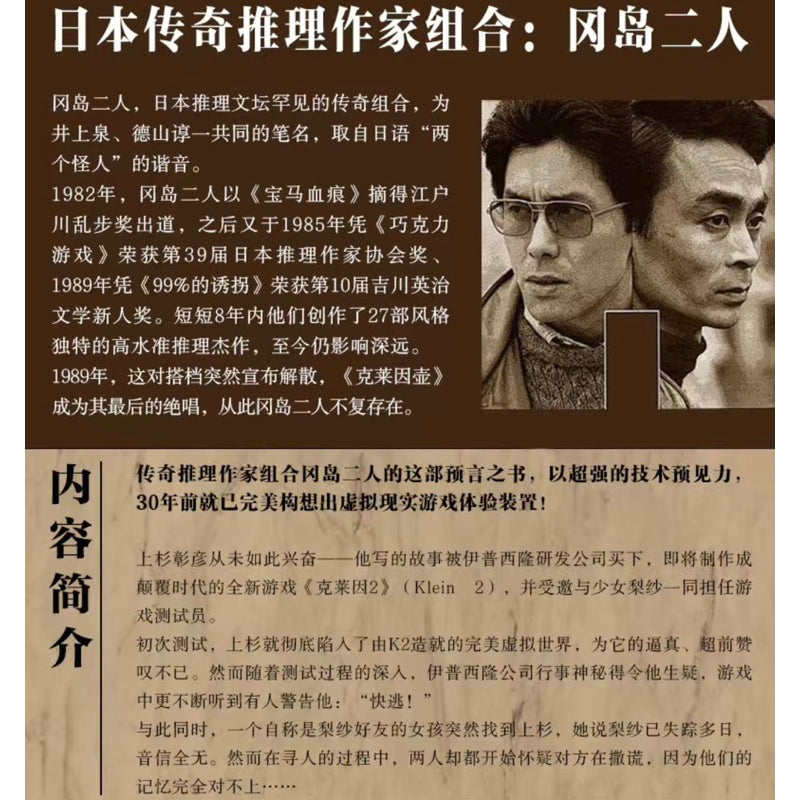 上杉彰彦从未如此兴奋——他写的故事被伊普西隆研发公司买下,即将制作成颠覆时代的全新游戏《克莱因2》(Klein 2),并受邀与少女梨纱一同担任游戏测试员。