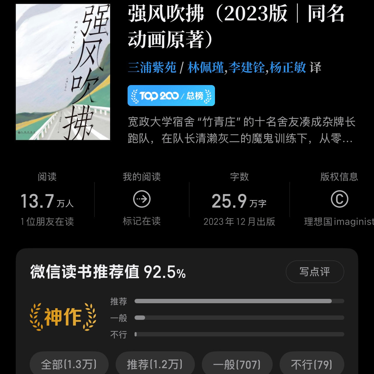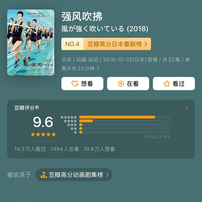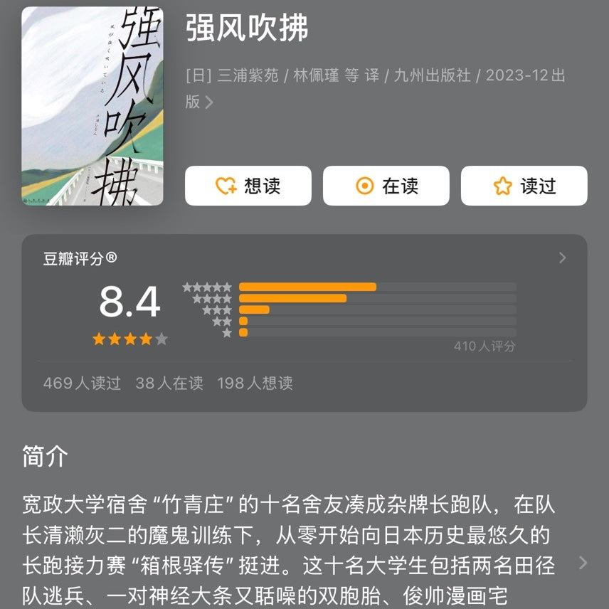 B站热血新番《强风吹拂》(豆瓣超2万人评价,评分高达9.6)同名原著小说,唯一正版引进。