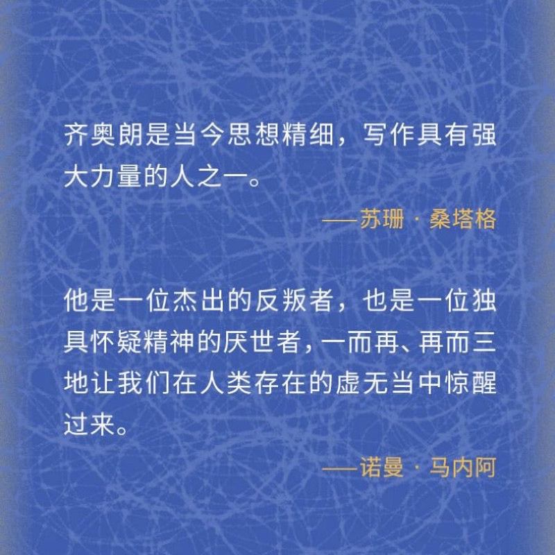 “齐奥朗是当今思想最精细,写作最具力量的人之一。”——苏珊·桑塔格
